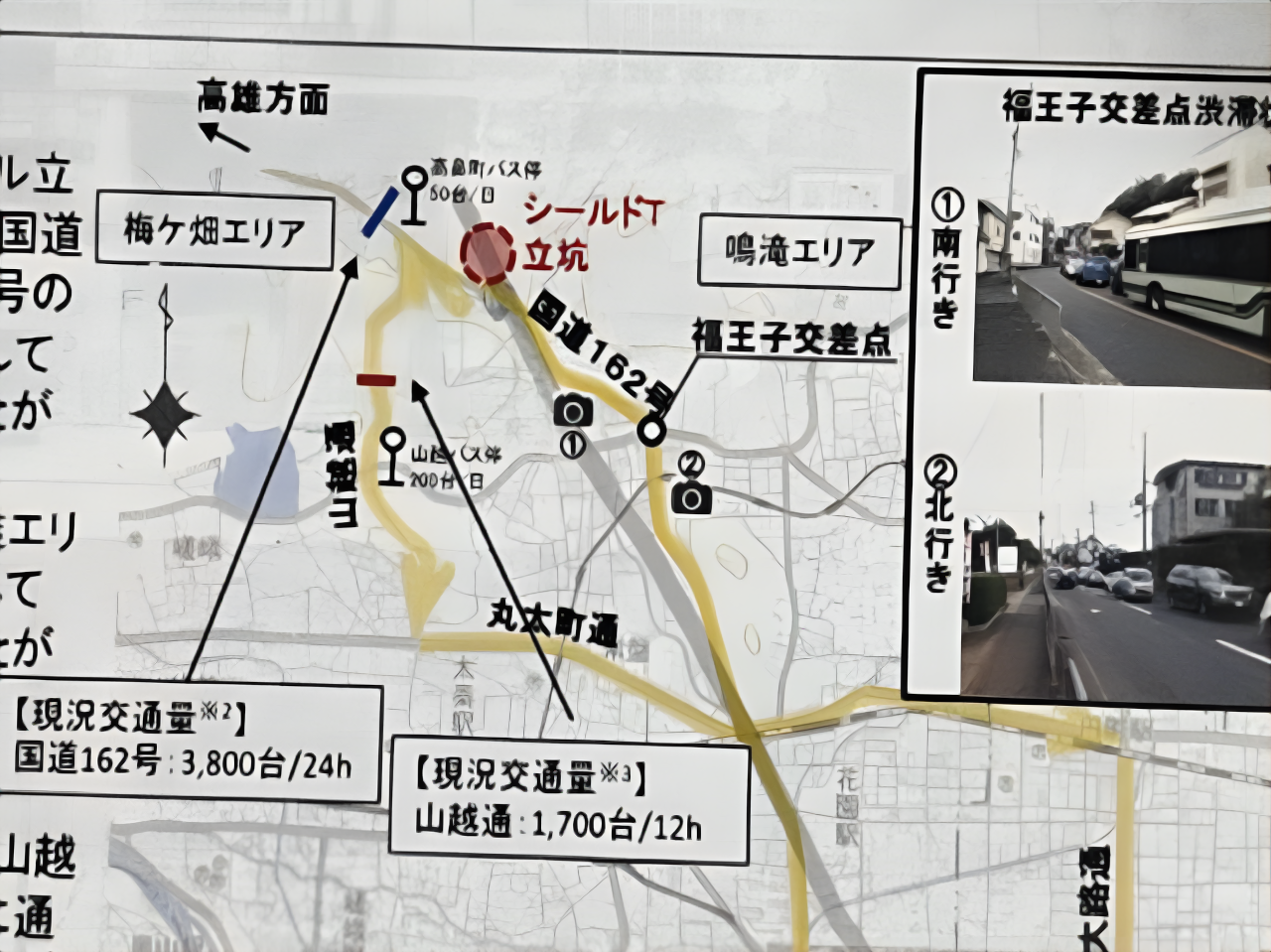• 「国道162号の福王子交差点は日常的に交通渋滞が発生しているため、極力回避することが必要」