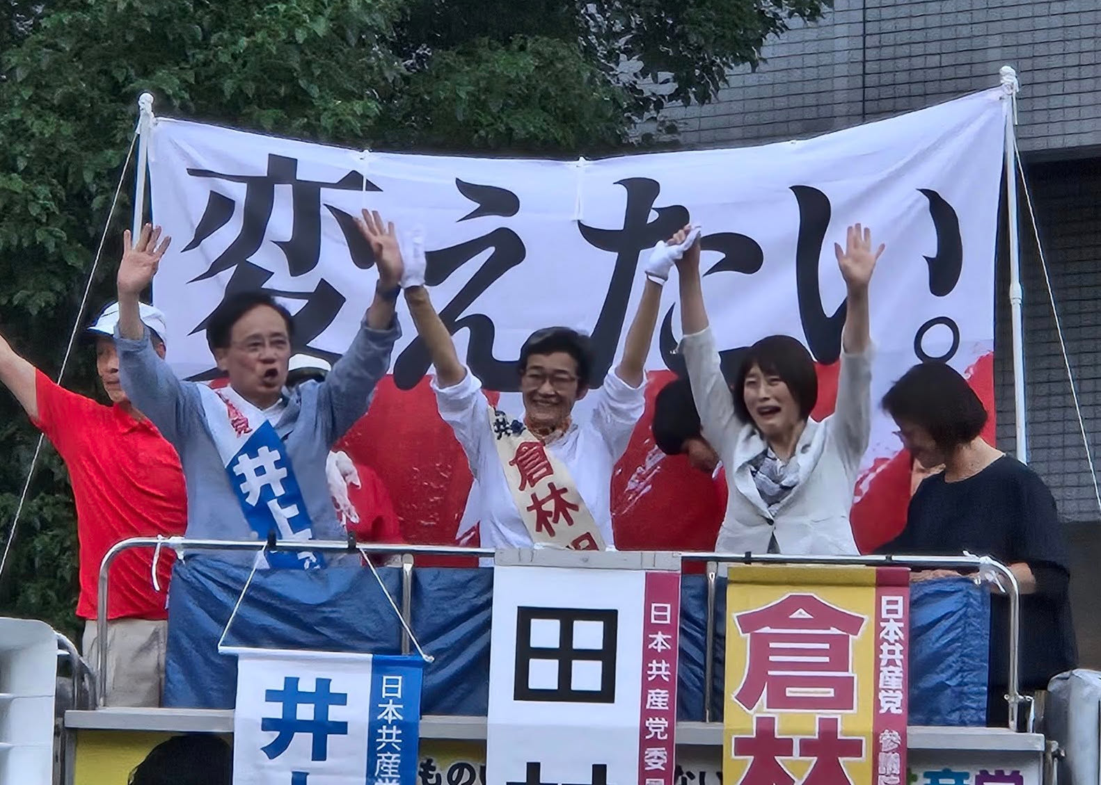 いま、病院を直接支援し、医師看護師不足の解消に向けてケア労働者の賃上げ処遇改善こそ必要と訴えた看護師出身の倉林明子候補、命守る宝の議席でした。